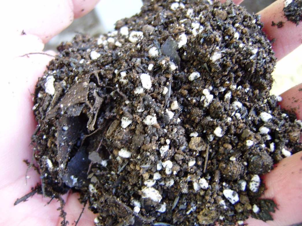 ・独自ブレンドで、植栽用(この場所用の独自ブレンド)の用土を入れる。
