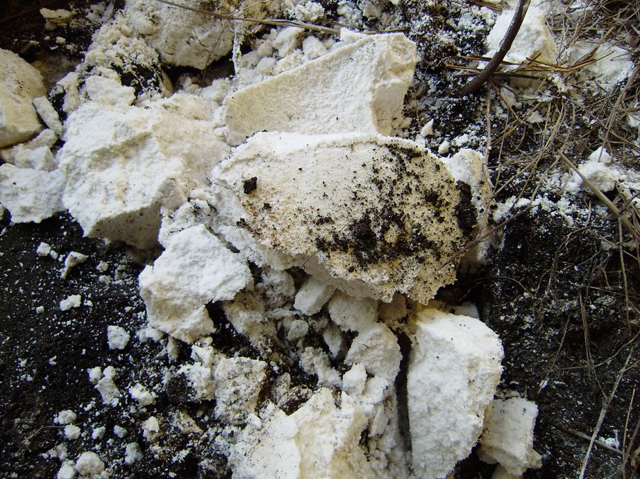 朝、外に出てみたら、コロコロの白い小さな粒が一面に。